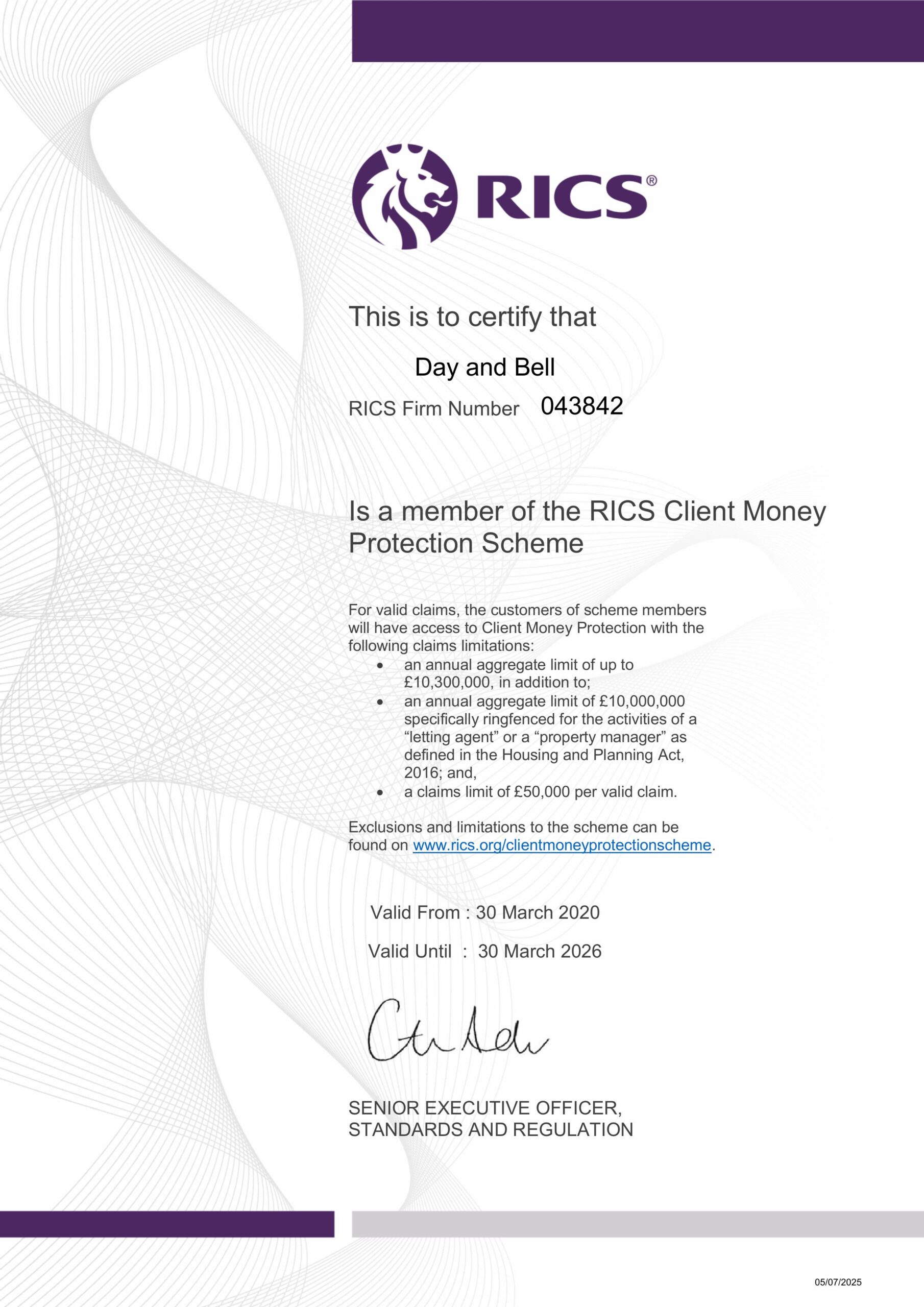 Day and Bell is a member of the Royal Institution of Chartered Surveyors Client Money Protection Scheme. View the procedures below.